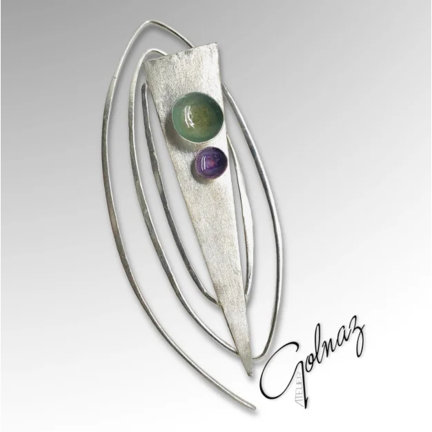 Μοναδικό , χειροποίητο ασημένιο μενταγιόν/μπροσέ +ασημένια αλυσίδα ωμέγα.