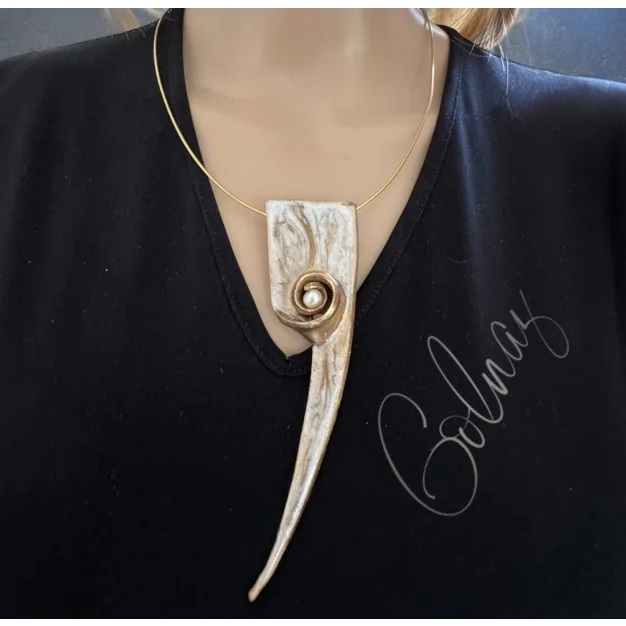 Unique designed pendant with a freshwater pearl including a goldplated silver omega chain. + a set of matching earrings. (Can be purchased without earrings).