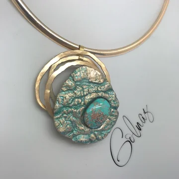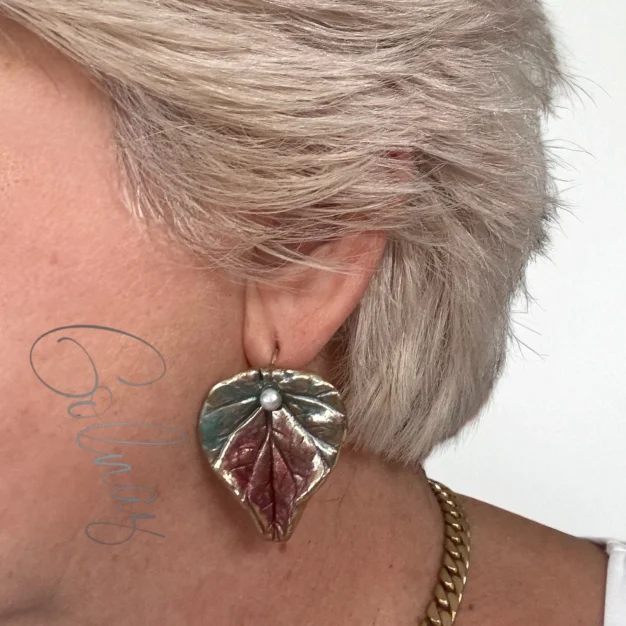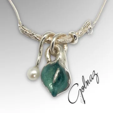 Unique design, handcrafted spang with two imitation pearls + a set of earrings (without earrings is possible)
