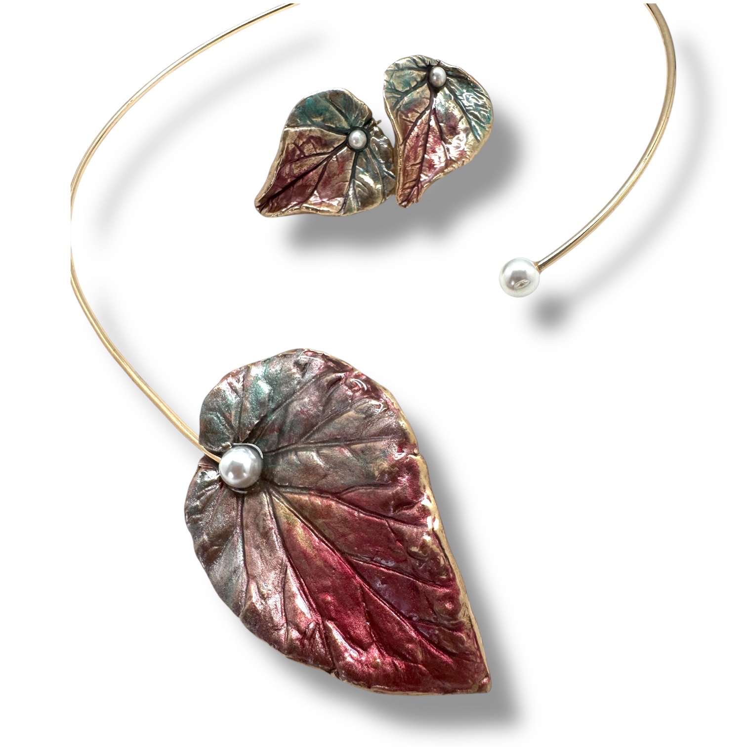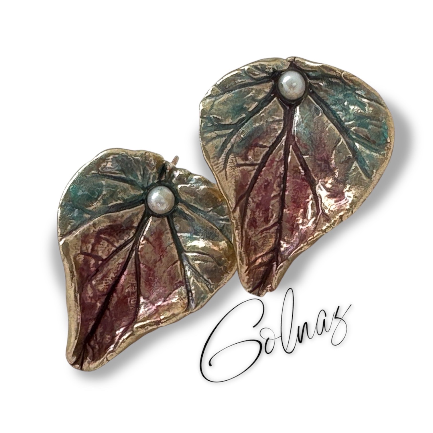 Unique design, handcrafted spang with two imitation pearls + a set of earrings (without earrings is possible)